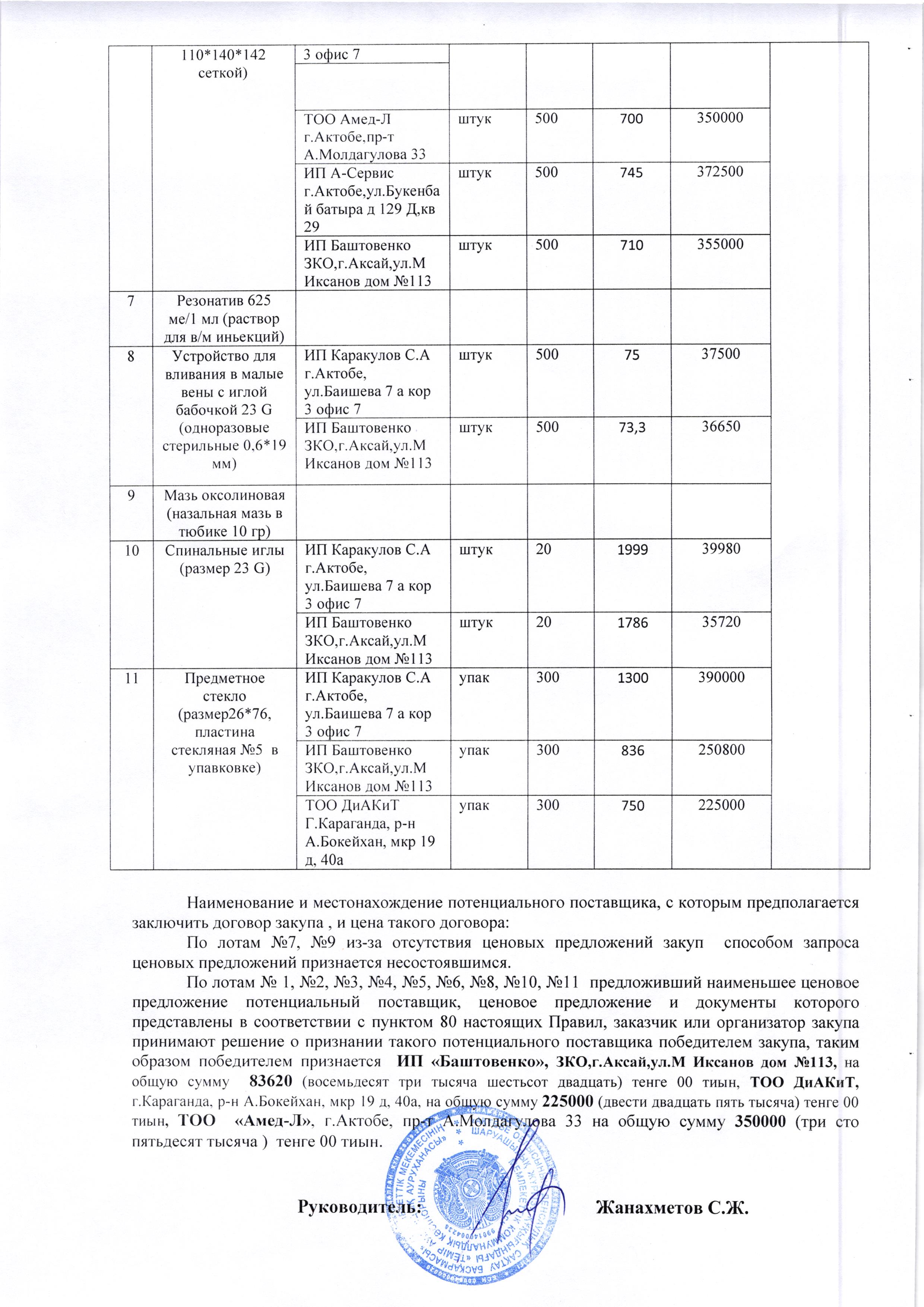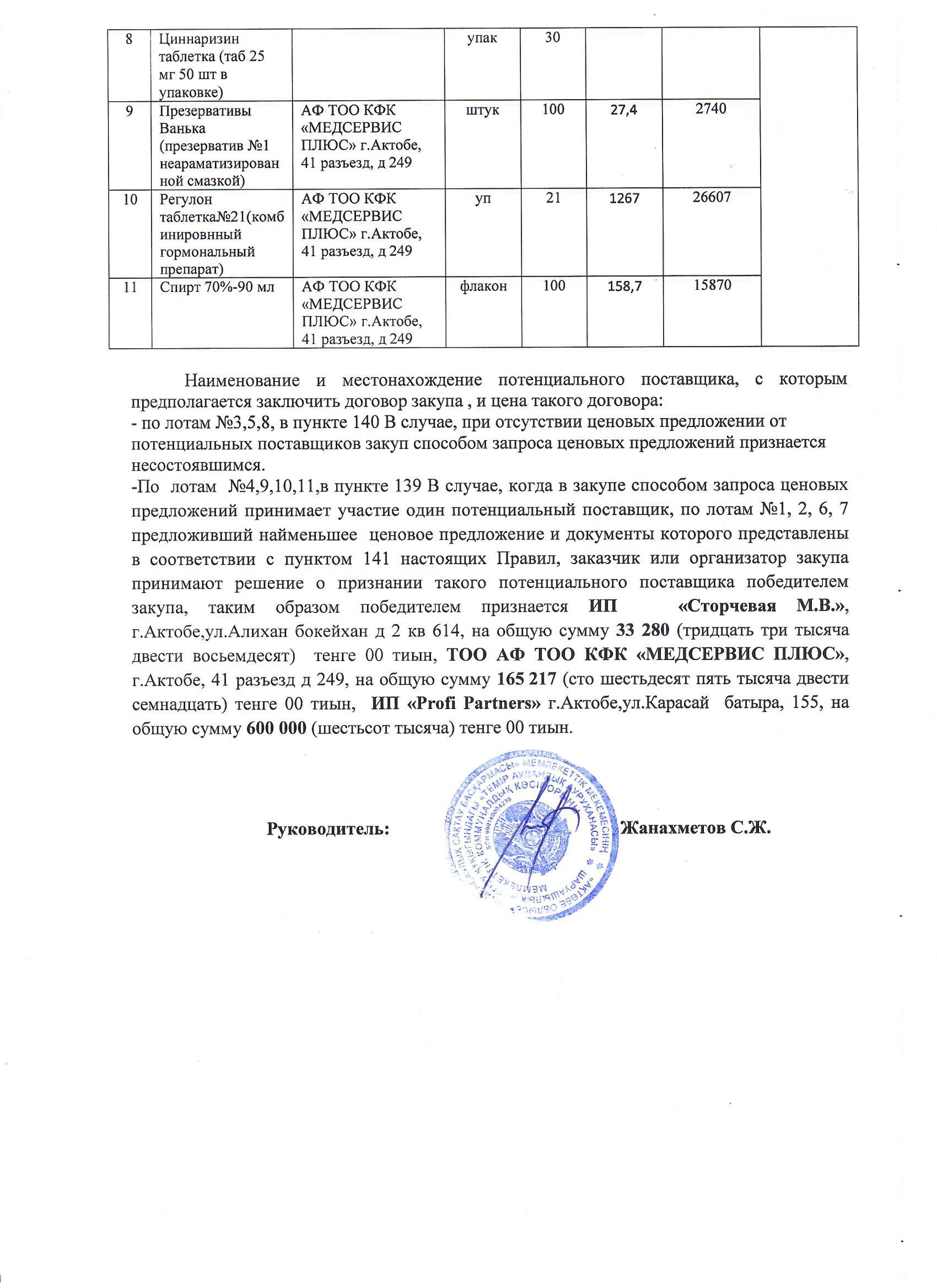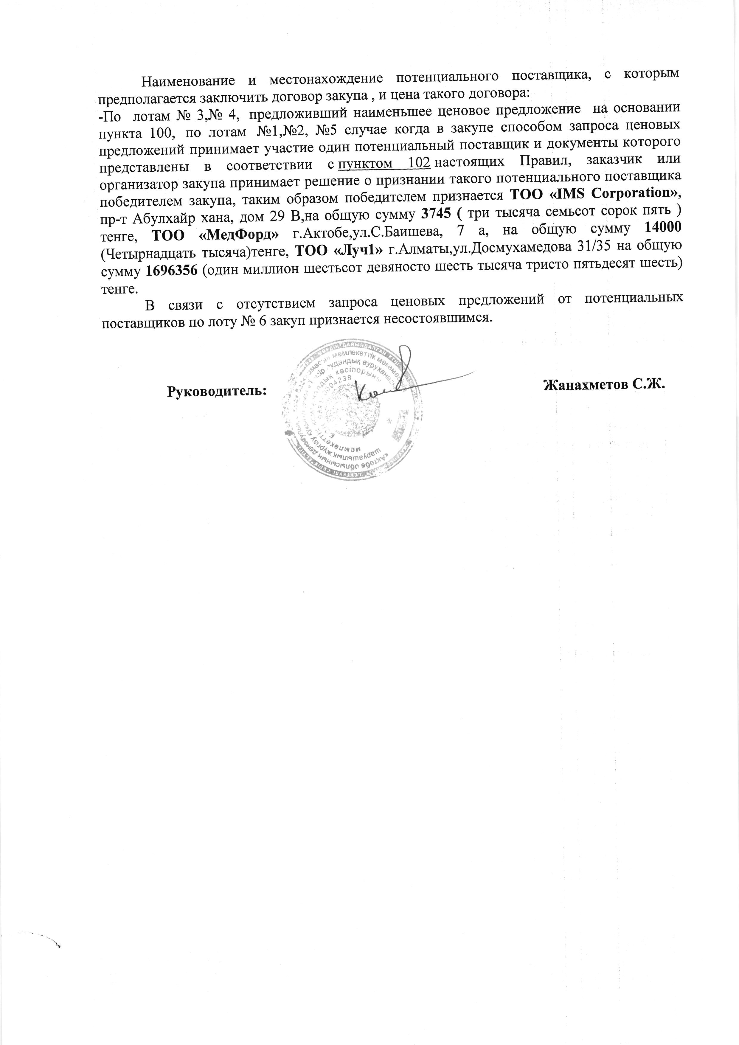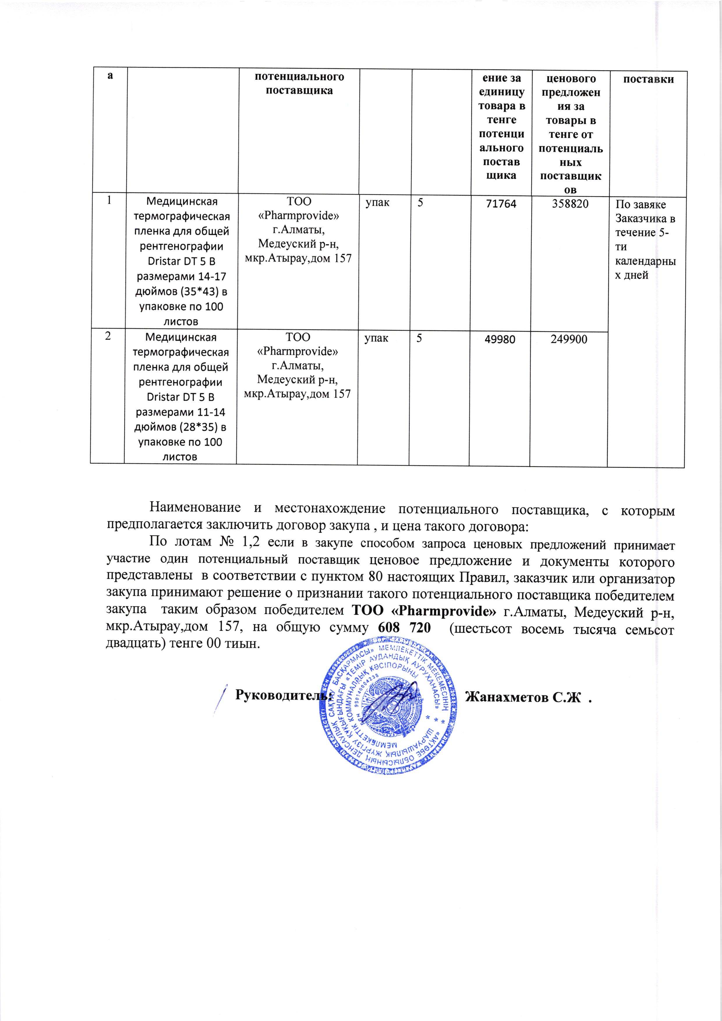 Объявление о закупе дискофиксrentgenplenka.pdf [630.57 Kb] (cкачиваний: 38) Протокол итогов закупа рентгенпленка