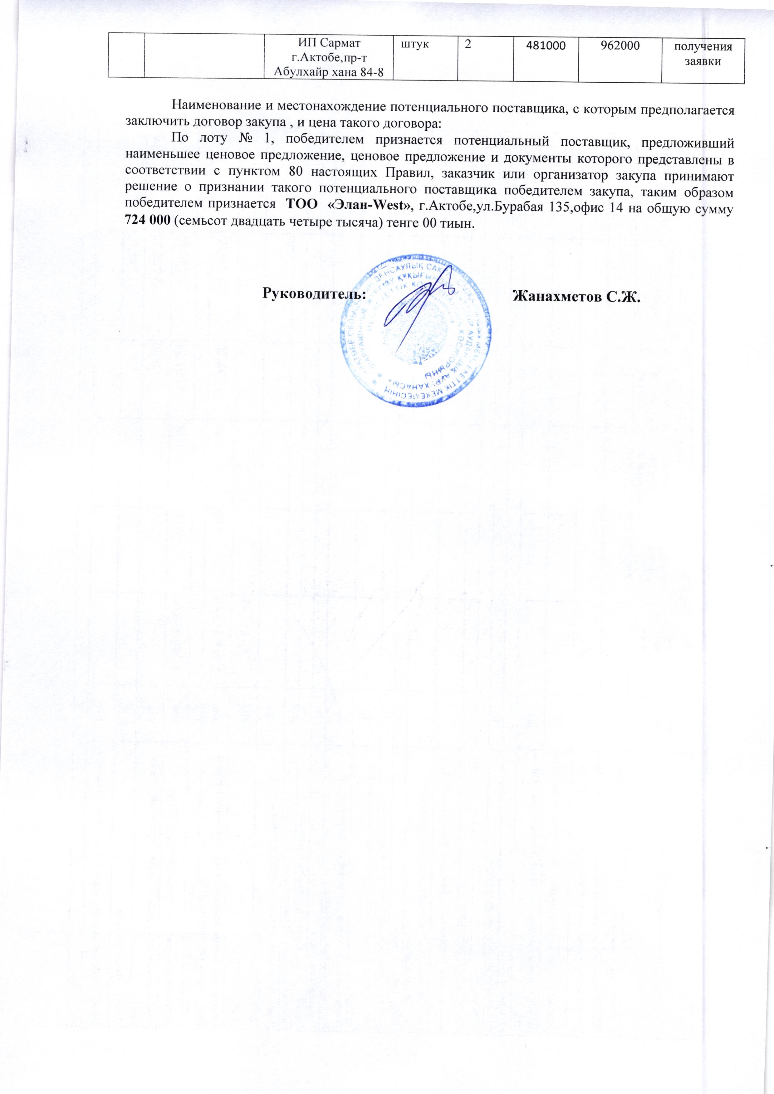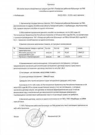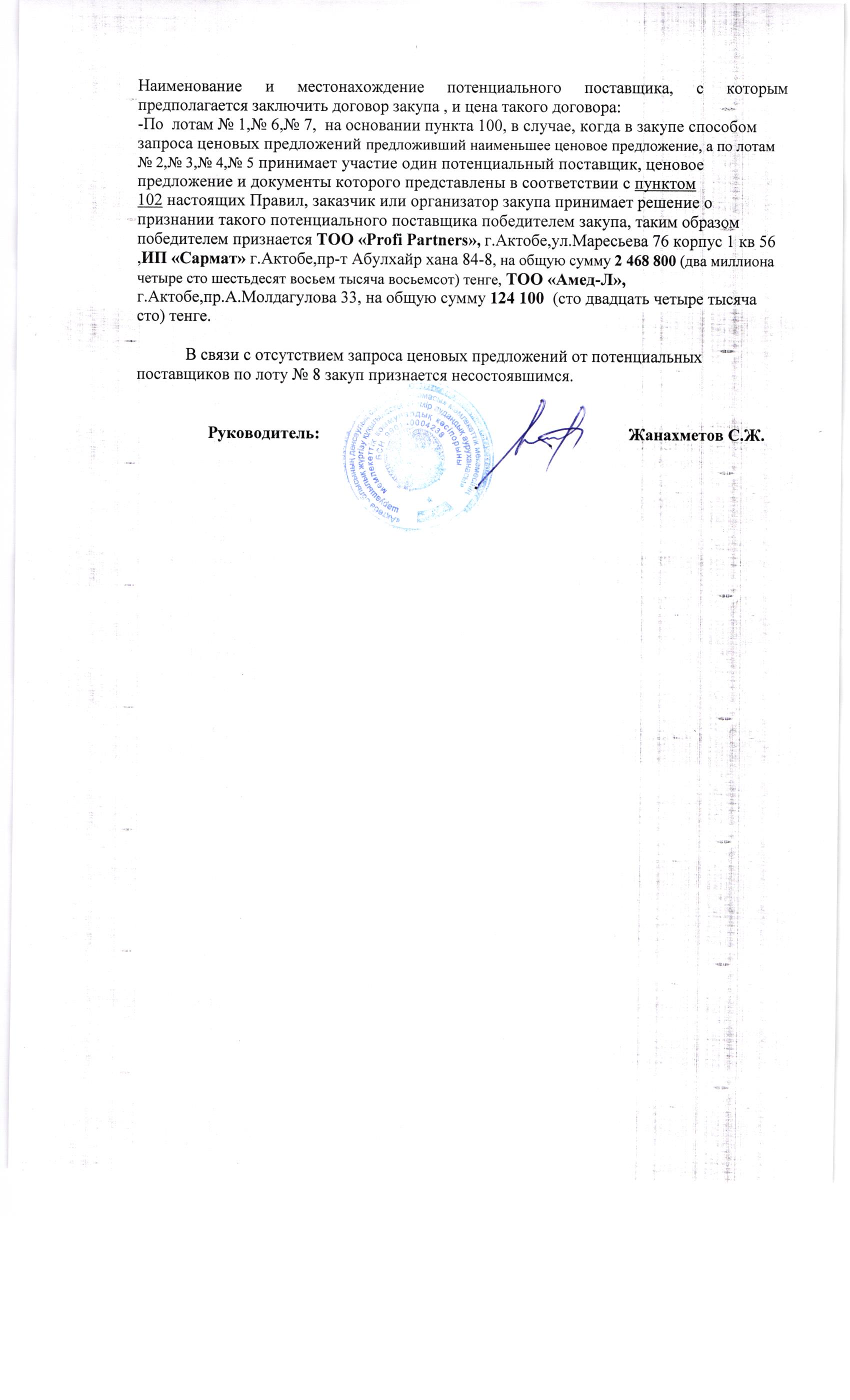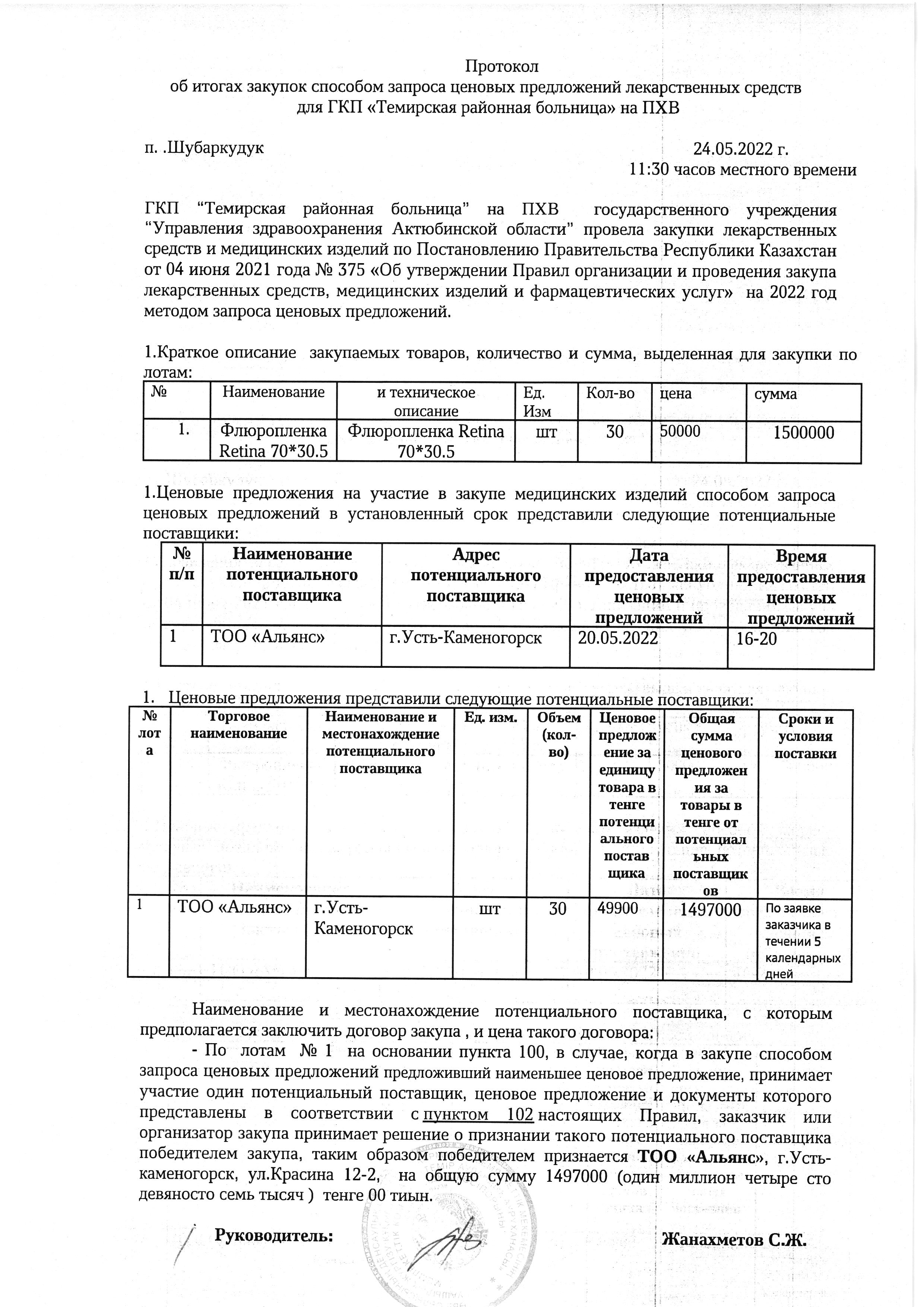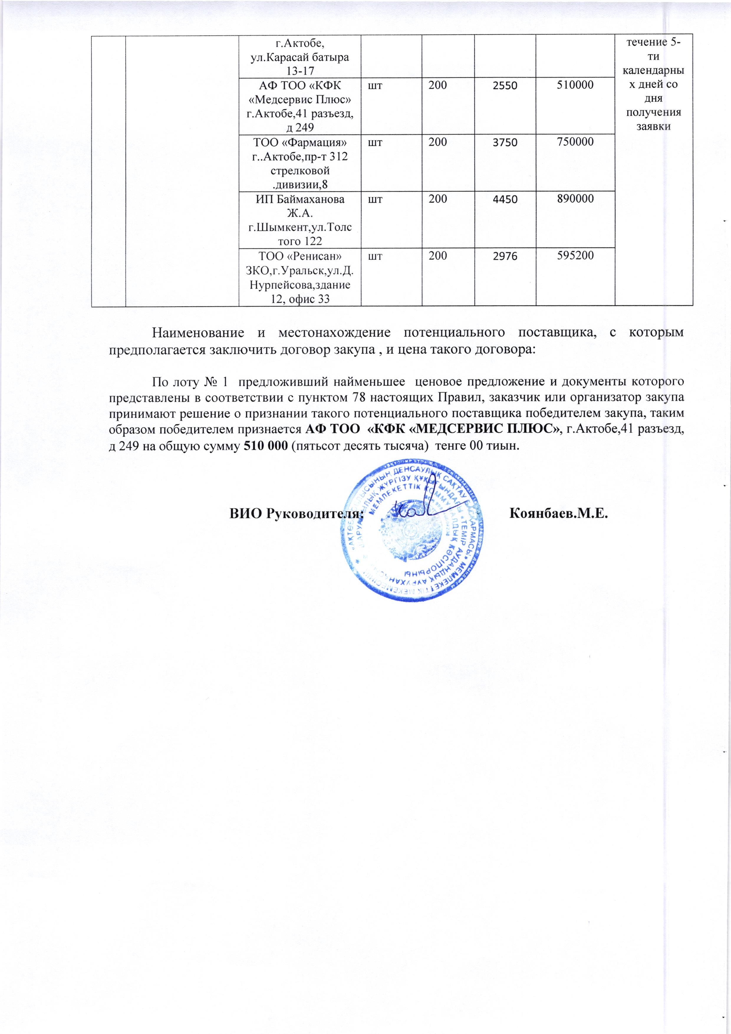 Объявление о закупе дискофиксrentgenplenka.pdf [630.57 Kb] (cкачиваний: 38) Протокол итогов закупа рентгенпленка