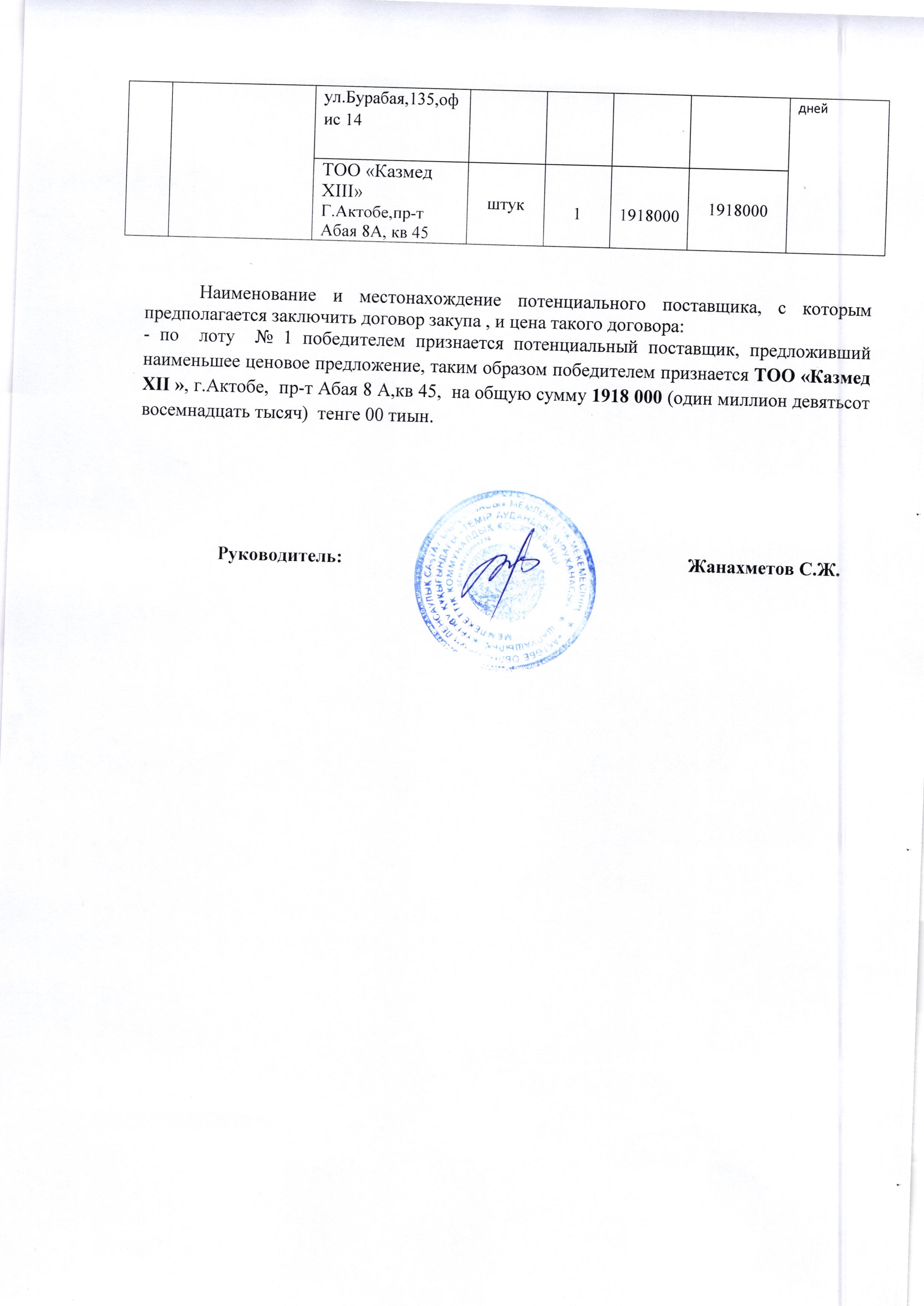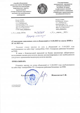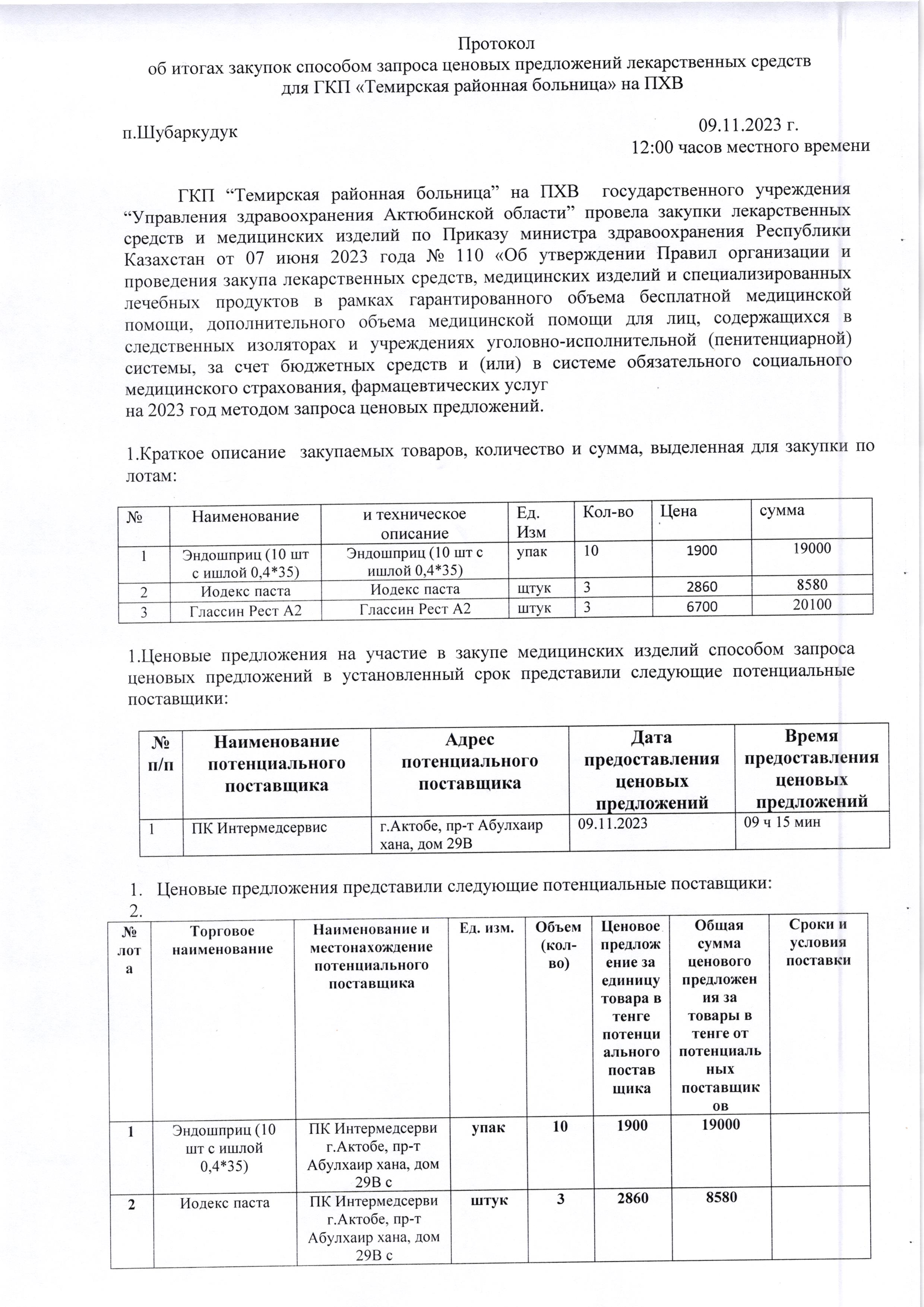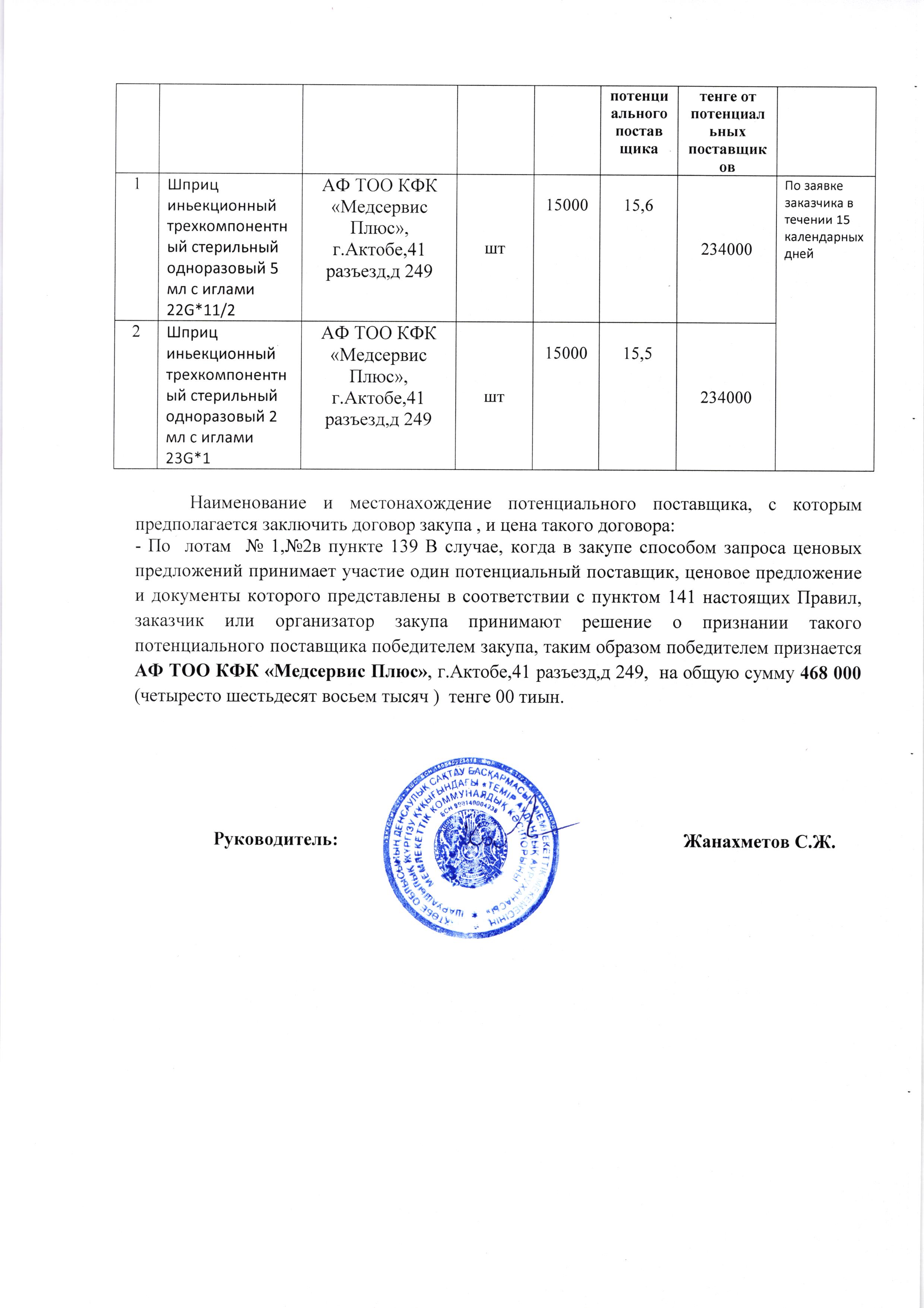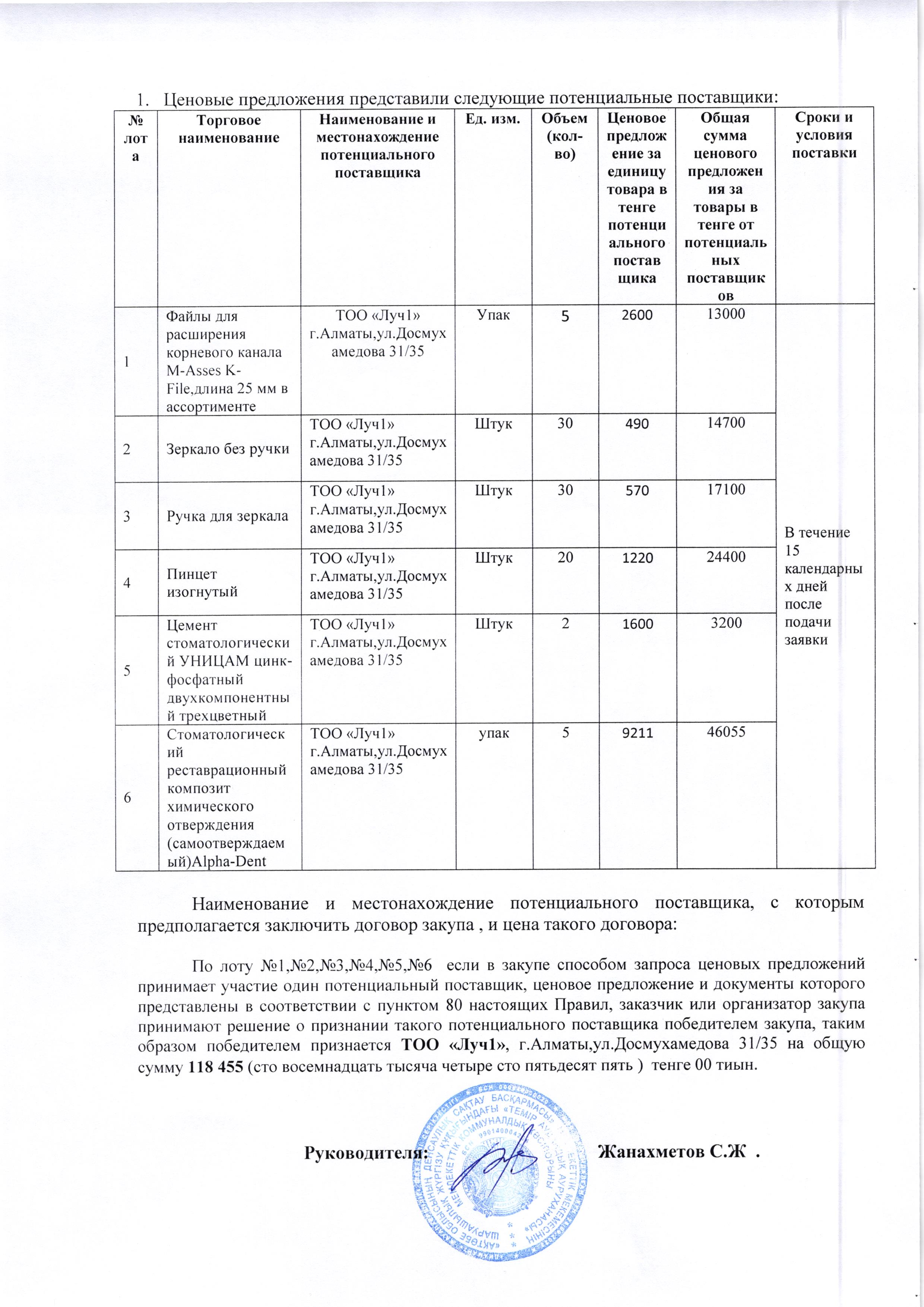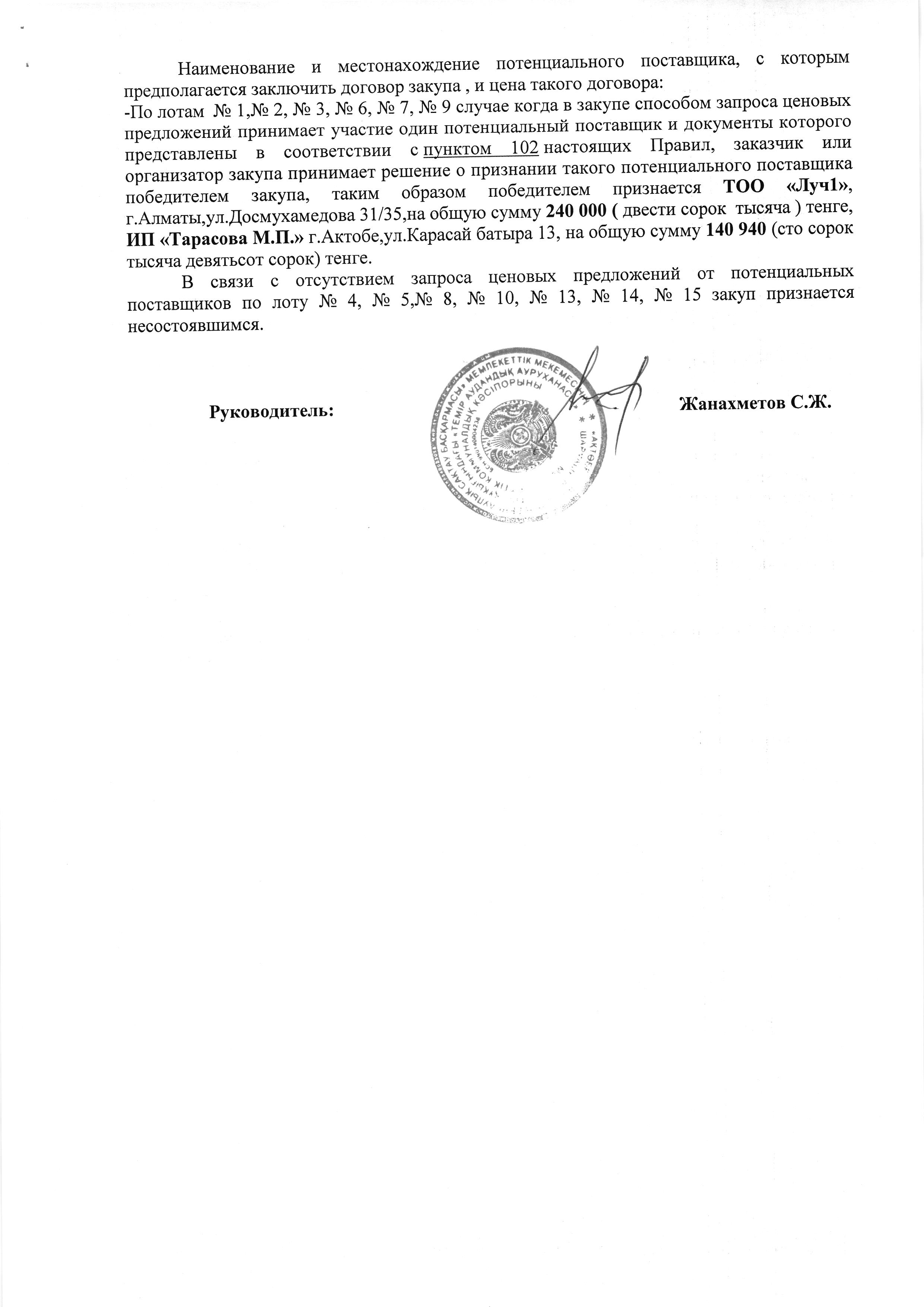 Объявление о закупе дискофиксrentgenplenka.pdf [630.57 Kb] (cкачиваний: 38) Протокол итогов закупа рентгенпленка