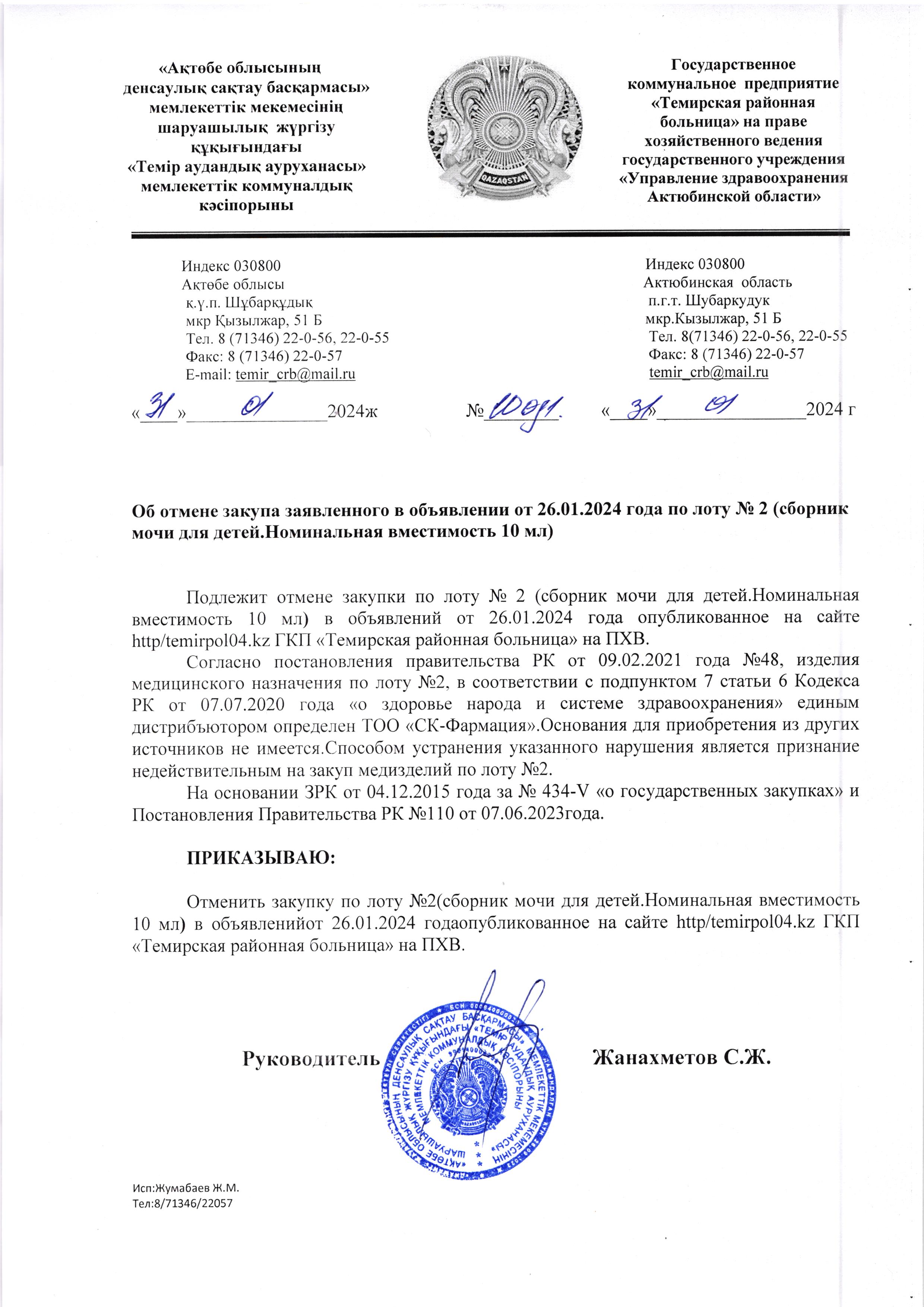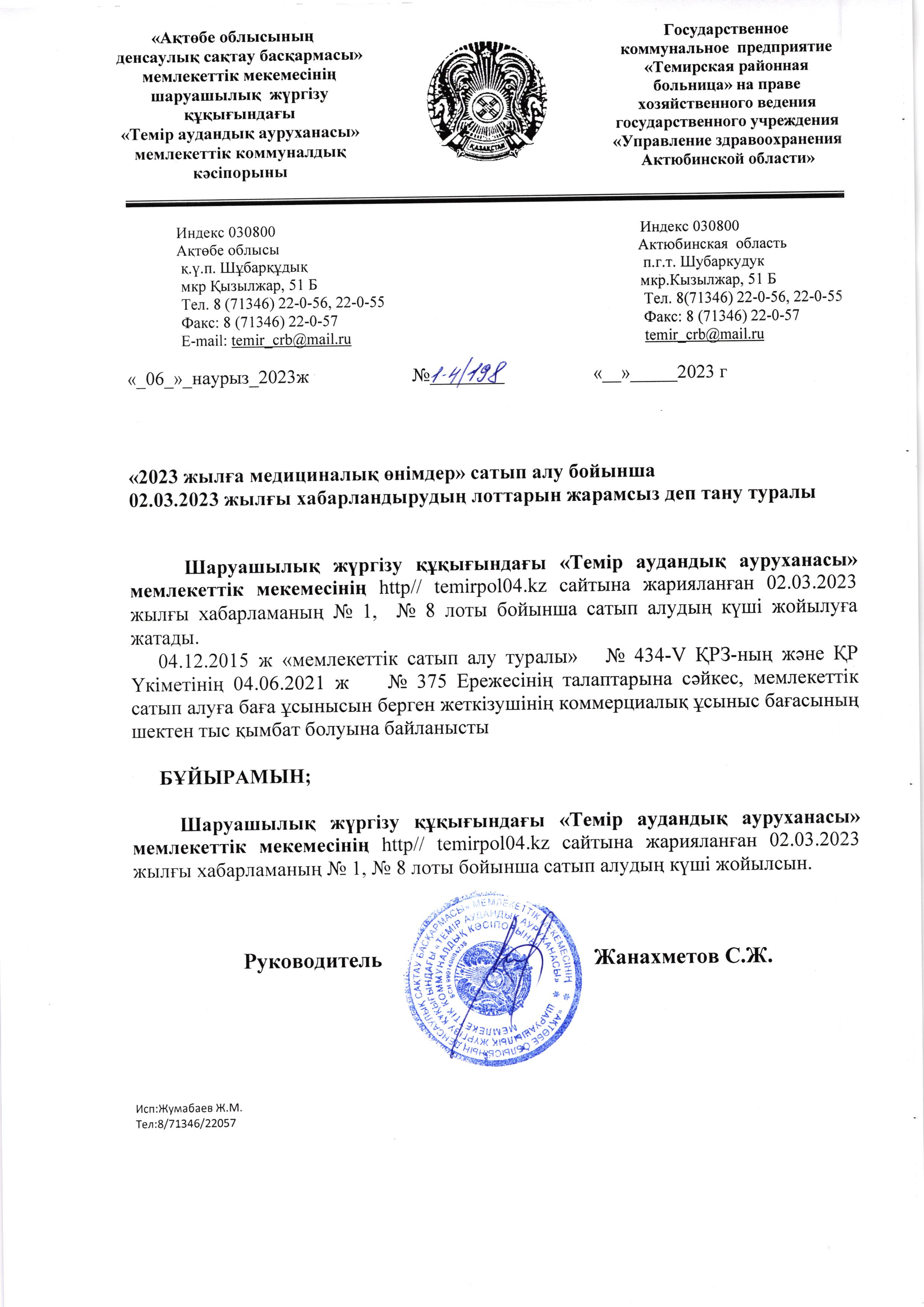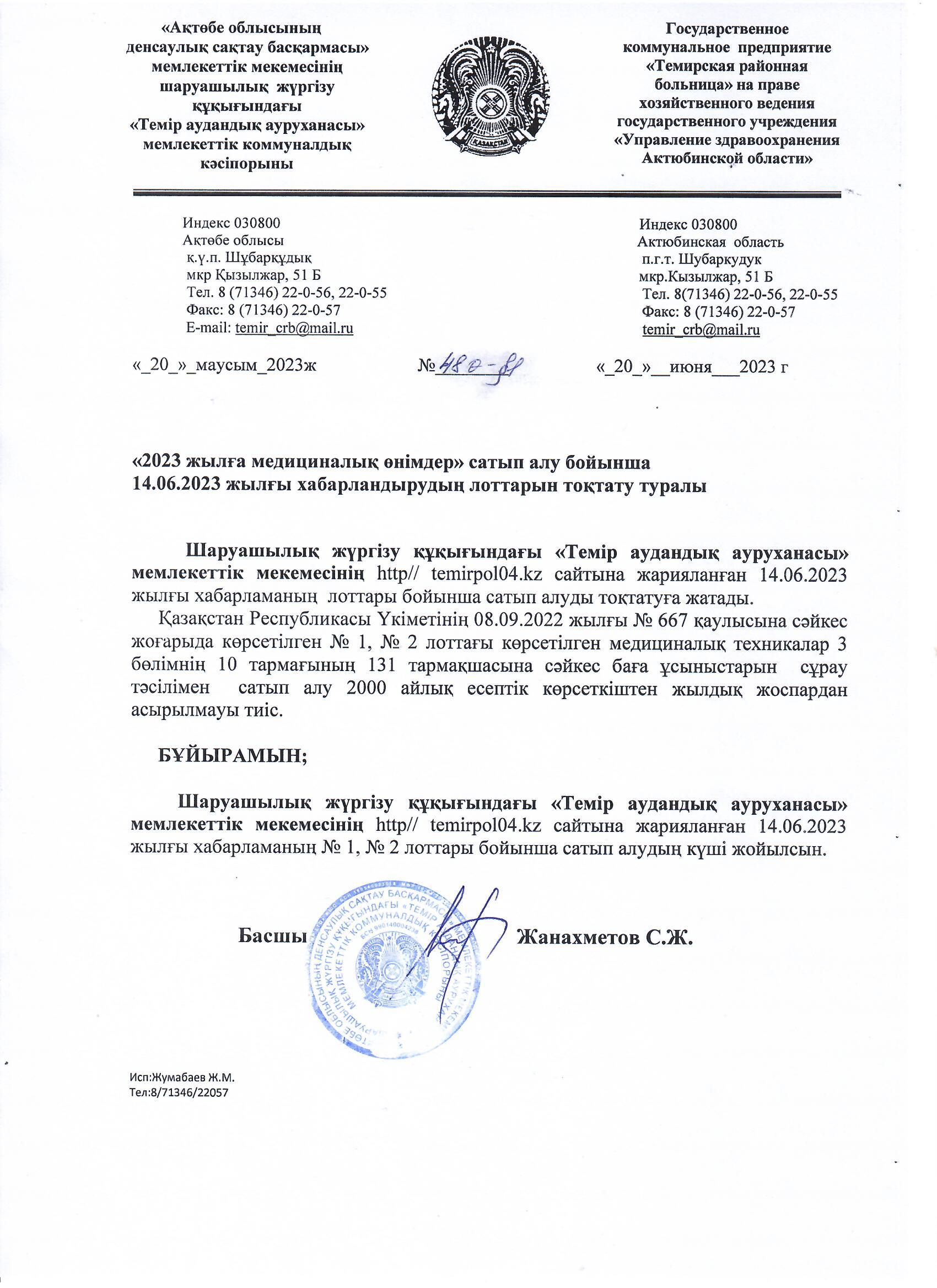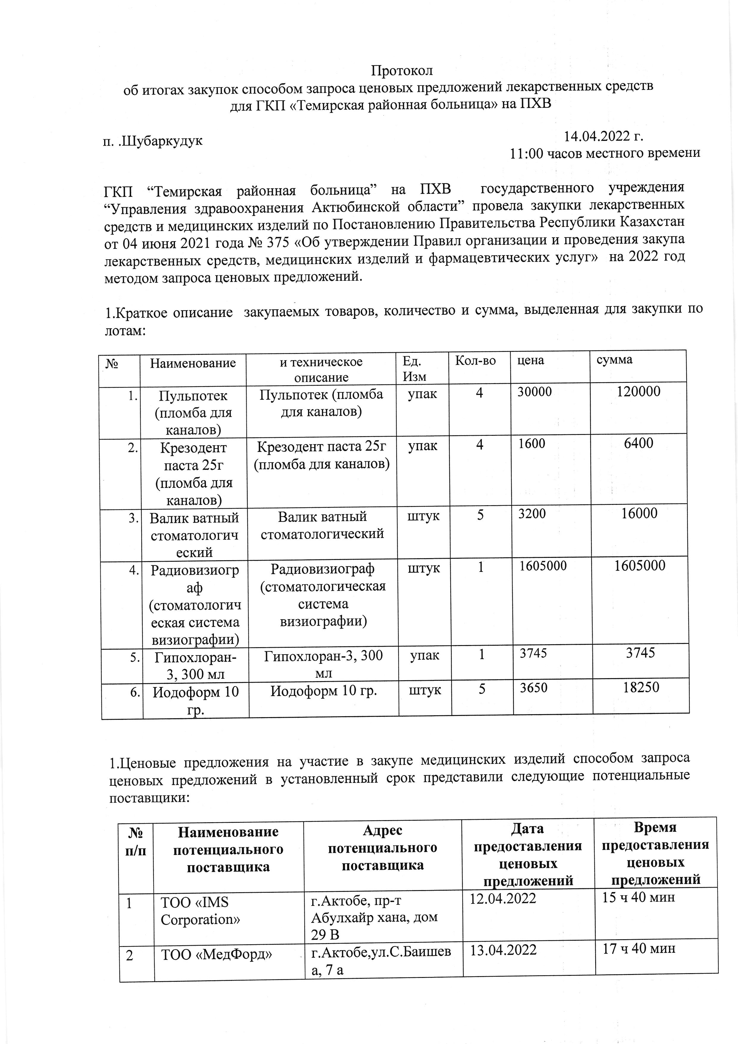 Объявление о закупе дискофиксrentgenplenka.pdf [630.57 Kb] (cкачиваний: 38) Протокол итогов закупа рентгенпленка